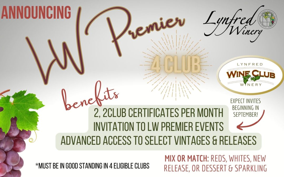 We are delighted to announce the newest Lynfred Wine Club Offering, LW Premier, a four-bottle membership with the ultimate in benefits!